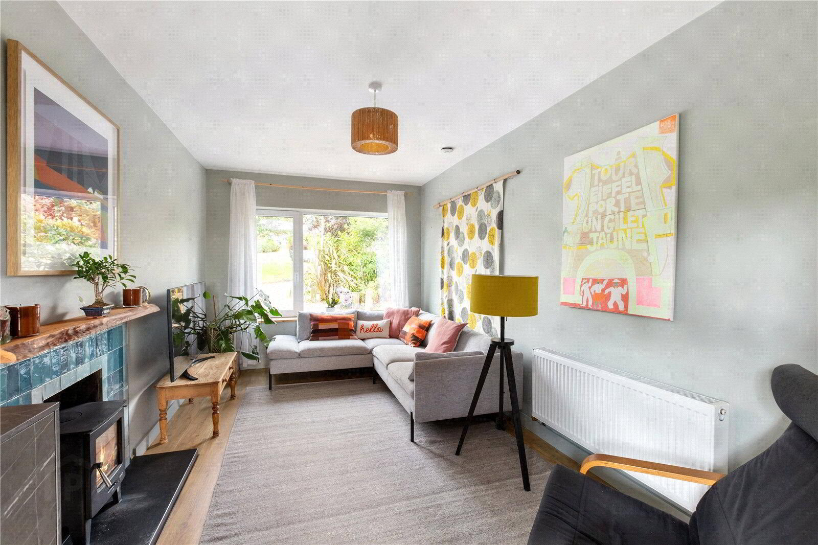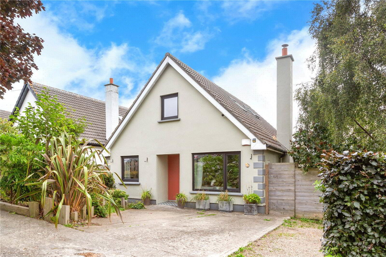 Upon entering, you are welcomed by an impressive and beautifully finished entrance hall complete with hot-press and built-in storage. To the rear of the property lies a bright and stylish open-plan kitchen and dining area overlooking the landscaped garden, with double doors leading to a charming conservatory, a perfect spot to relax and enjoy the surroundings. To the front, the spacious yet inviting living room features a woodburning stove, creating a warm and cosy focal point.