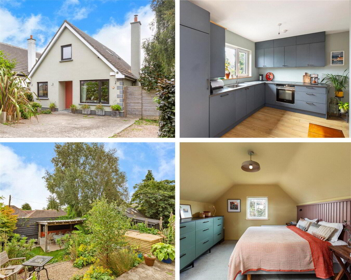 Occupying a substantial site of approximately 0.17 acres, the property enjoys a prominent corner position adjoining Rockey Road. To the front, a gravel driveway provides comfortable parking for two to three vehicles, framed by mature hedging that enhances privacy and kerb appeal. To the rear, the outdoor space has been thoughtfully landscaped to create a truly impressive setting for both relaxation and entertaining. A raised patio leads to a sheltered lower patio area complete with barbecue facilities, built-in seating, and beautifully planted raised flower beds, while the expansive garden is filled with mature specimen trees and shrubs.