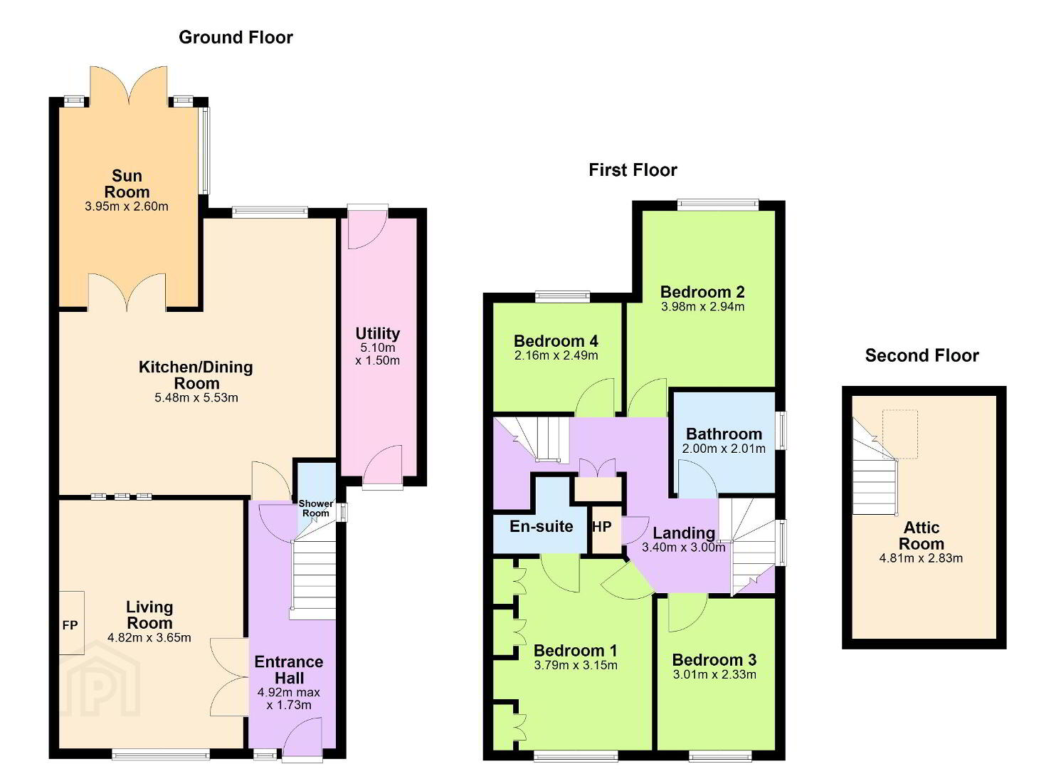On the first floor, you will find a generously sized primary bedroom with an en suite, three additional bedrooms, and a full family bathroom. The property also benefits from a full attic conversion, which can be used as a home office or 'hangout room'.