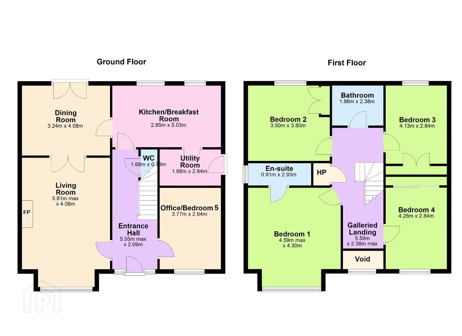 The kitchen/breakfast room is well appointed with a Granite worktops and a breakfast bar seating area. A utility room with side access and a guest WC complete the ground floor. An additional office/bedroom 5 offers flexibility for remote working or use as a playroom or guest room.