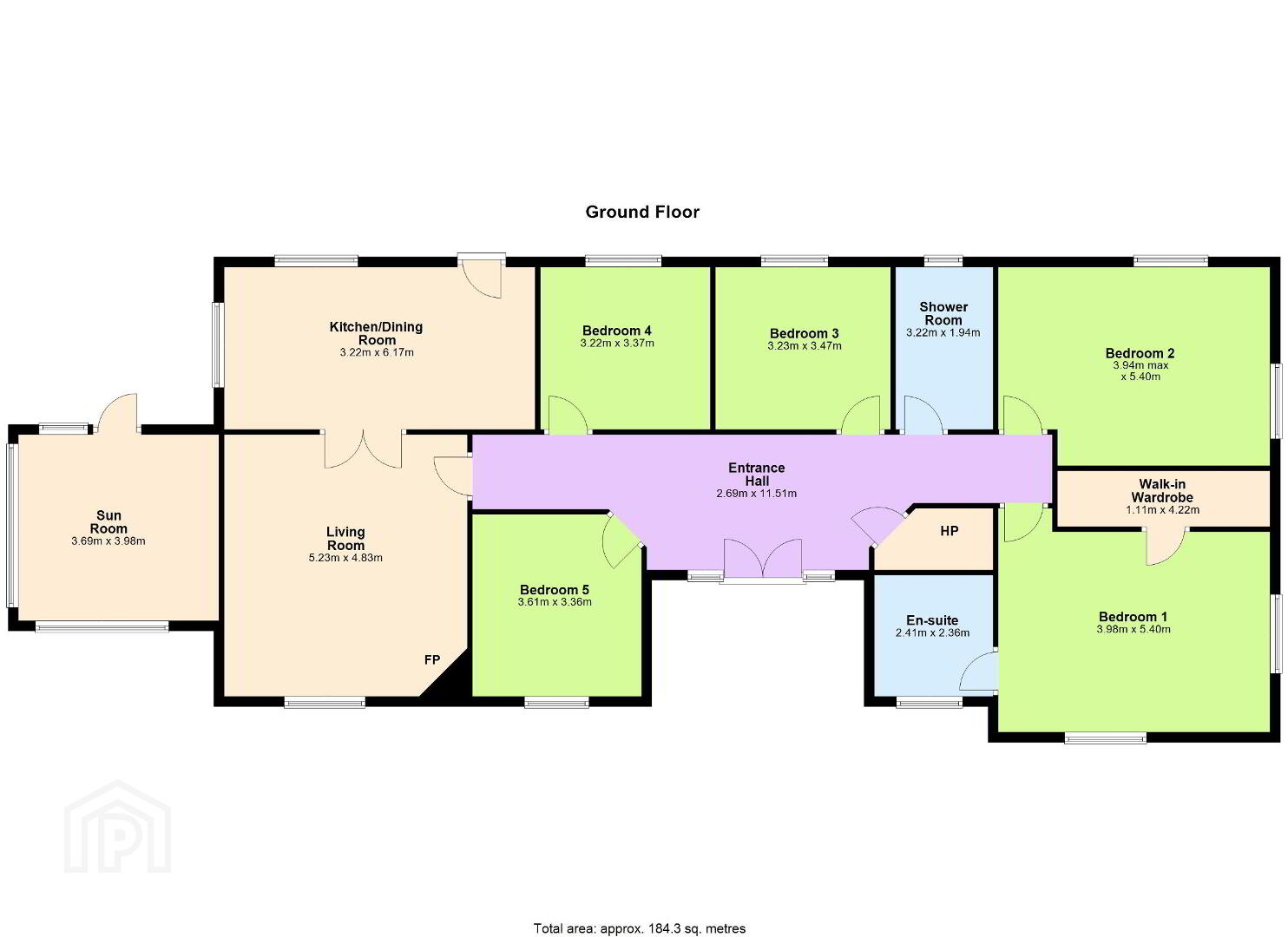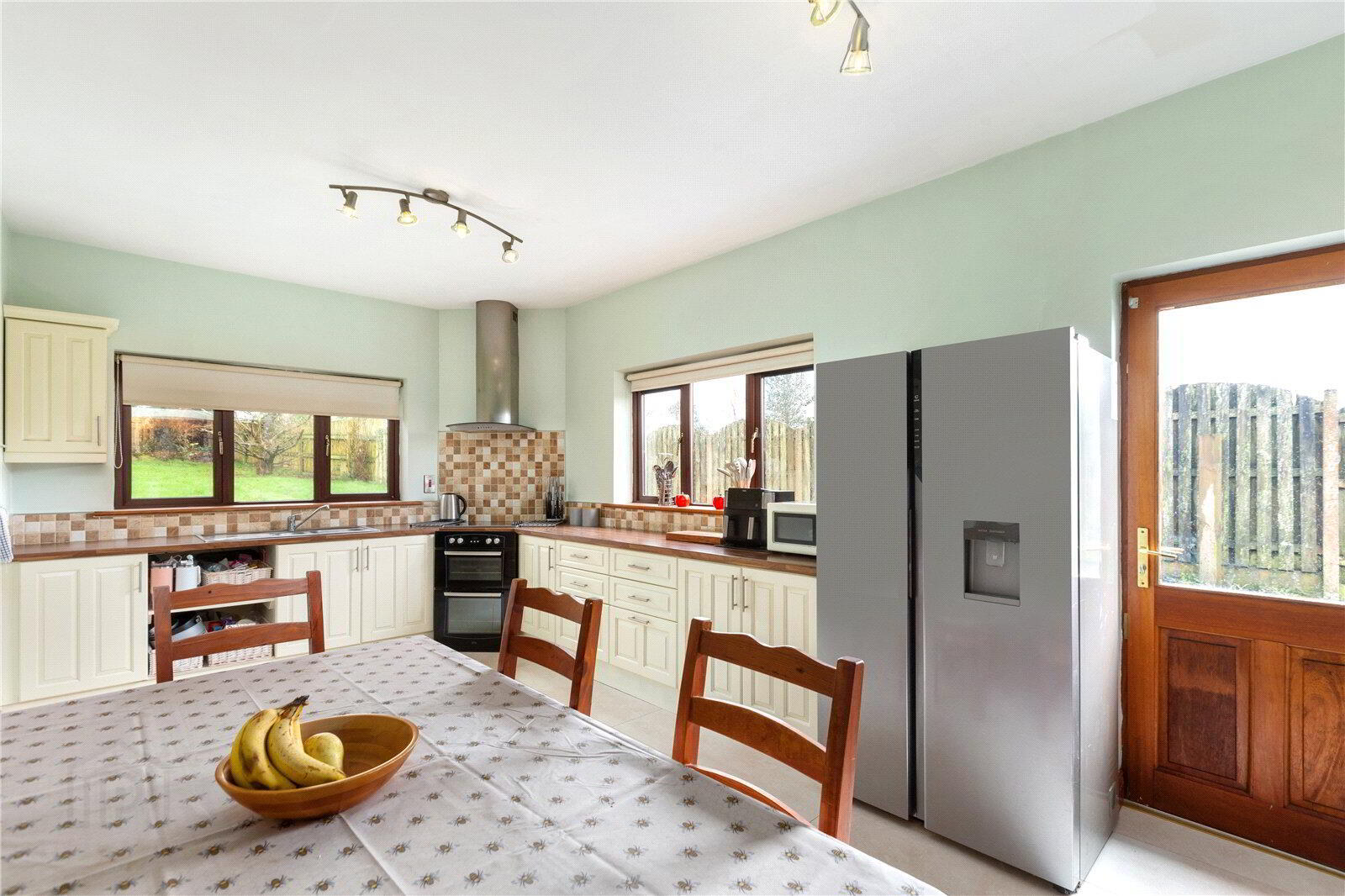Accommodation comprises of large open entrance hall with hot-press, good sized living room with feature wood burning stove, fully fitted kitchen, sunroom with doors out to garden, 5 double bedrooms with master ensuite and full family bathroom.