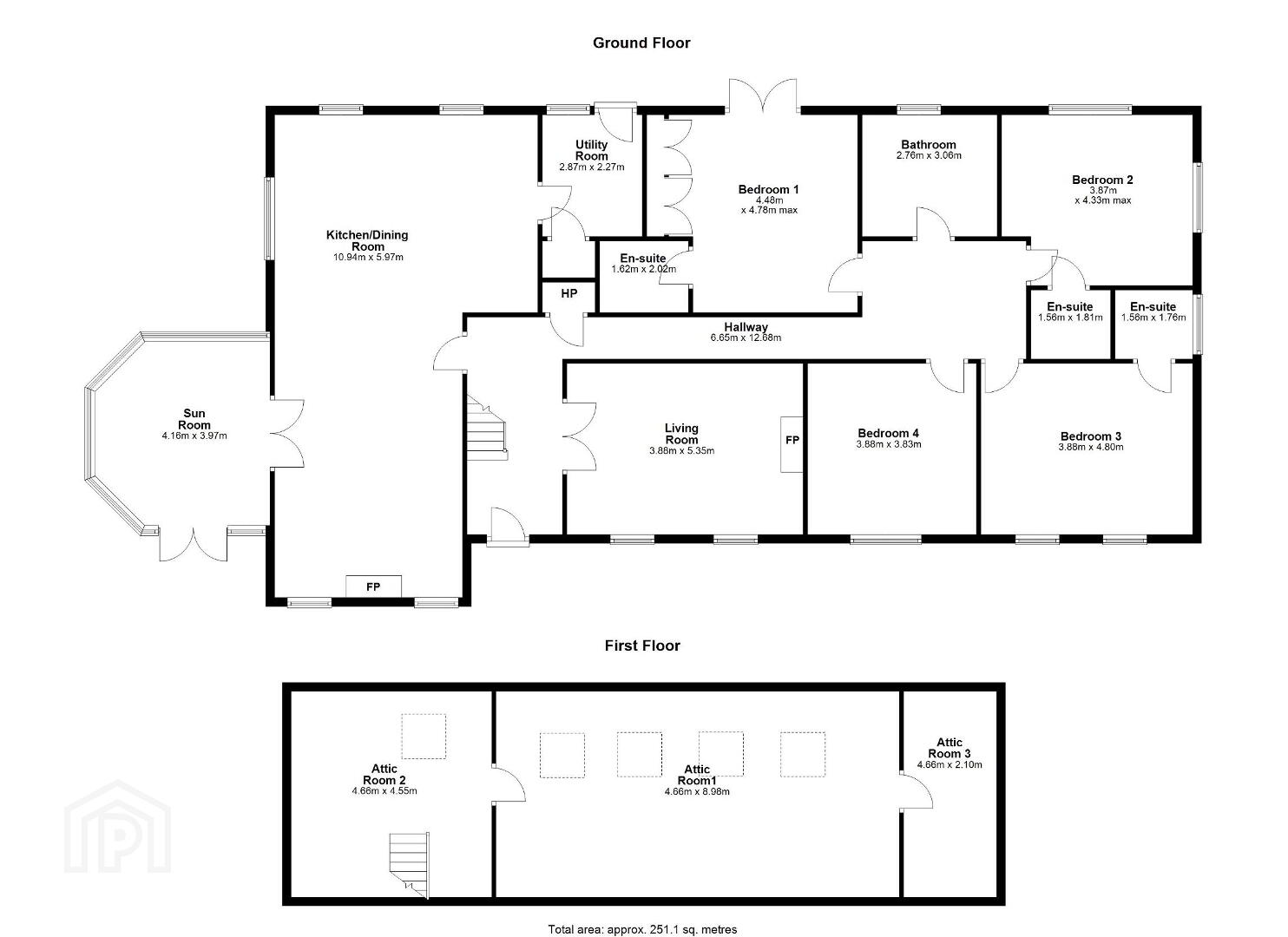 This fine home offers particularly generous sized rooms with an impressive light filled entrance hall, a comfortable living room with feature open fireplace, a wonderful L-shaped kitchen opening to the superb dining area with feature stove, double doors opening out to a spacious and bright sunroom, a utility area and Guest WC & WHB. There are 4 double Bedrooms, three ensuite (2 of which are unfinished) and a contemporary family Bathroom completes the ground floor accommodation. At first floor and off the landing are two large attic rooms with velux windows which can easily be converted and are suitable to a variety of uses.