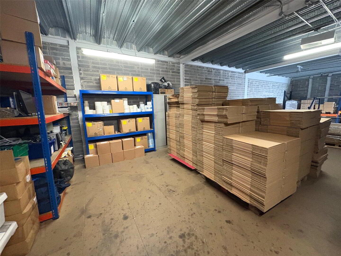 The ground floor is divided in to warehouse area and office space with WC and fully fitted canteen. This unit has been cleverly designed with an own door office area to the front and a double height warehouse with electric roller door to the rear.